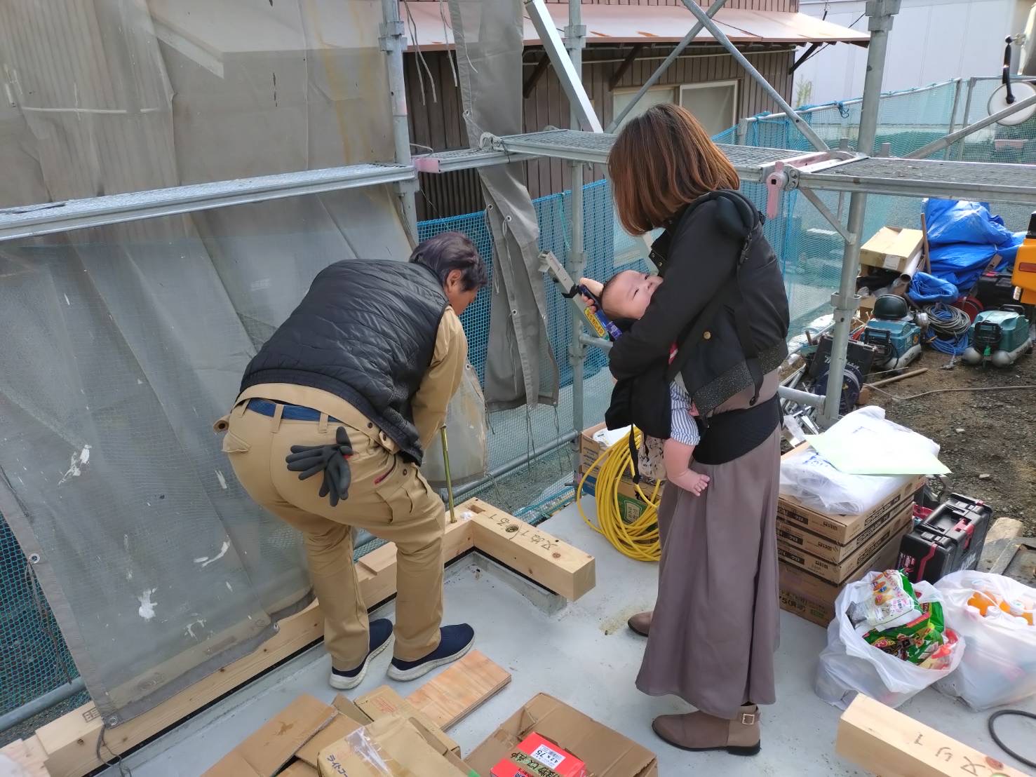 先日、O様邸の棟上げがあった。 ご主人様は、あいにく、仕事で来られなかった。