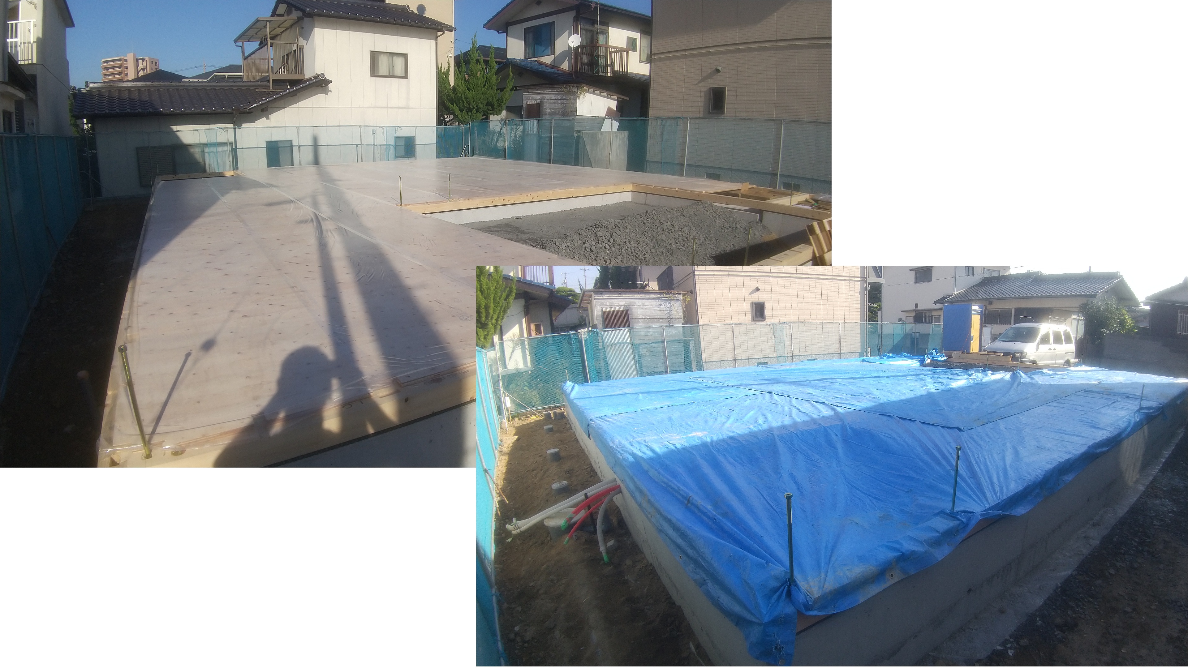 玄関や風呂周りは通気孔穴の開いていない機密基礎パッキンを敷いています。
