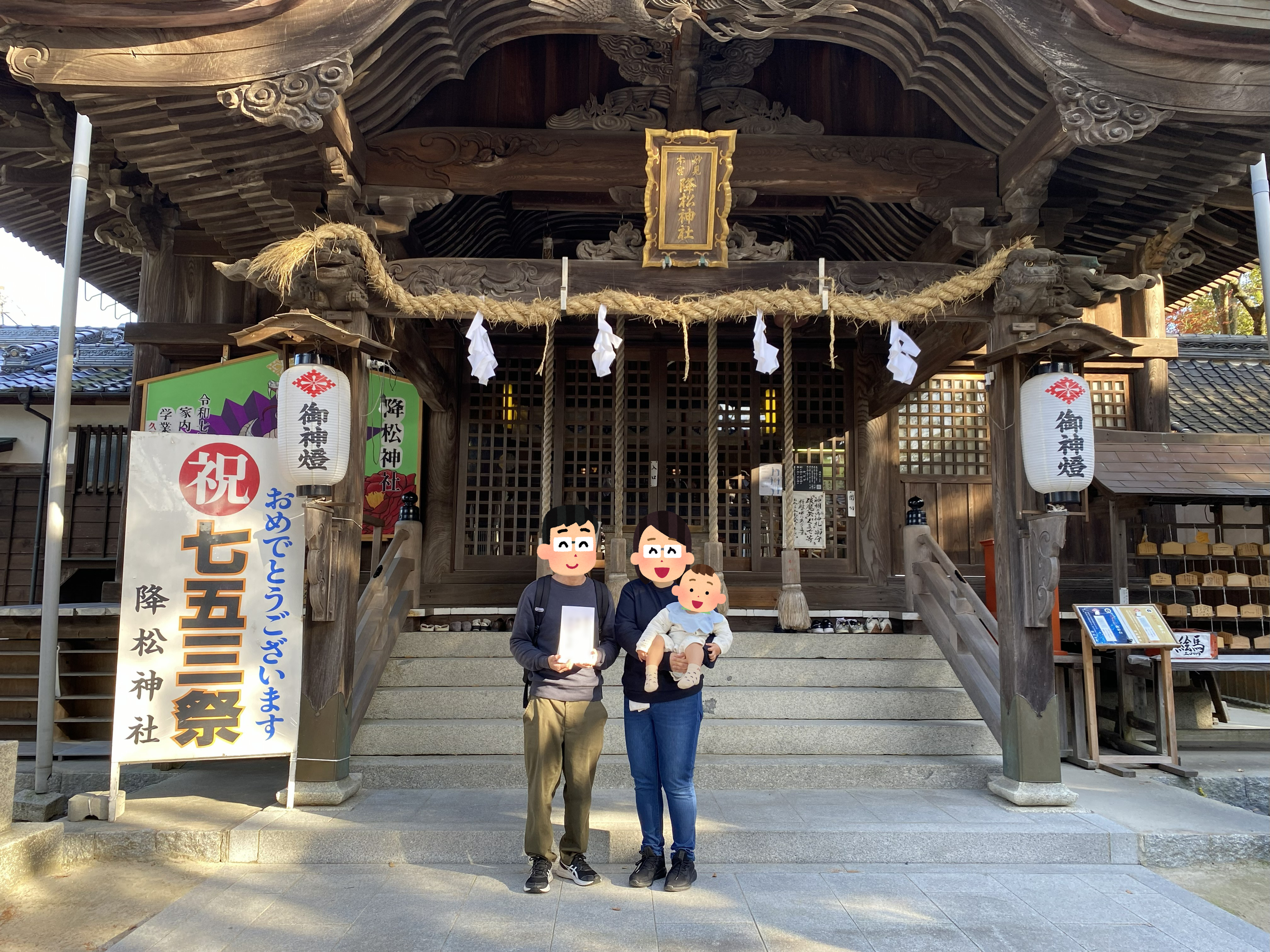 先日、U様邸の地鎮祭が、お馴染みの降松神社で執り行われた。 今回は、七五三の他の方とも一緒になった。
