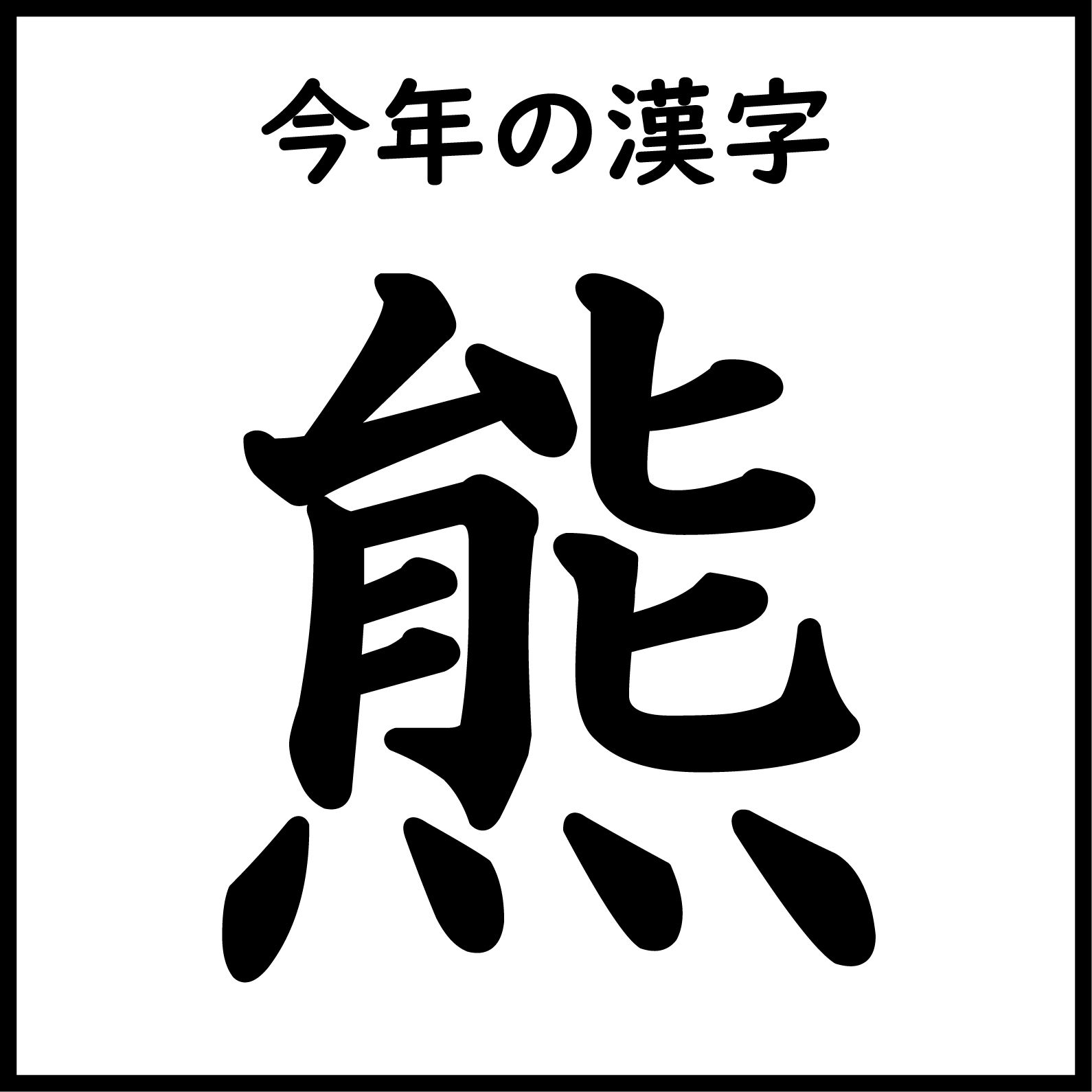 今年の漢字が、「熊」に決まった!? 各地で、熊の出没が頻繁にあった事、 和歌山のパンダが中国に返還された事が選考理由だそうだ。 何か、いまいちピンと来ないが、そうなんだろう。