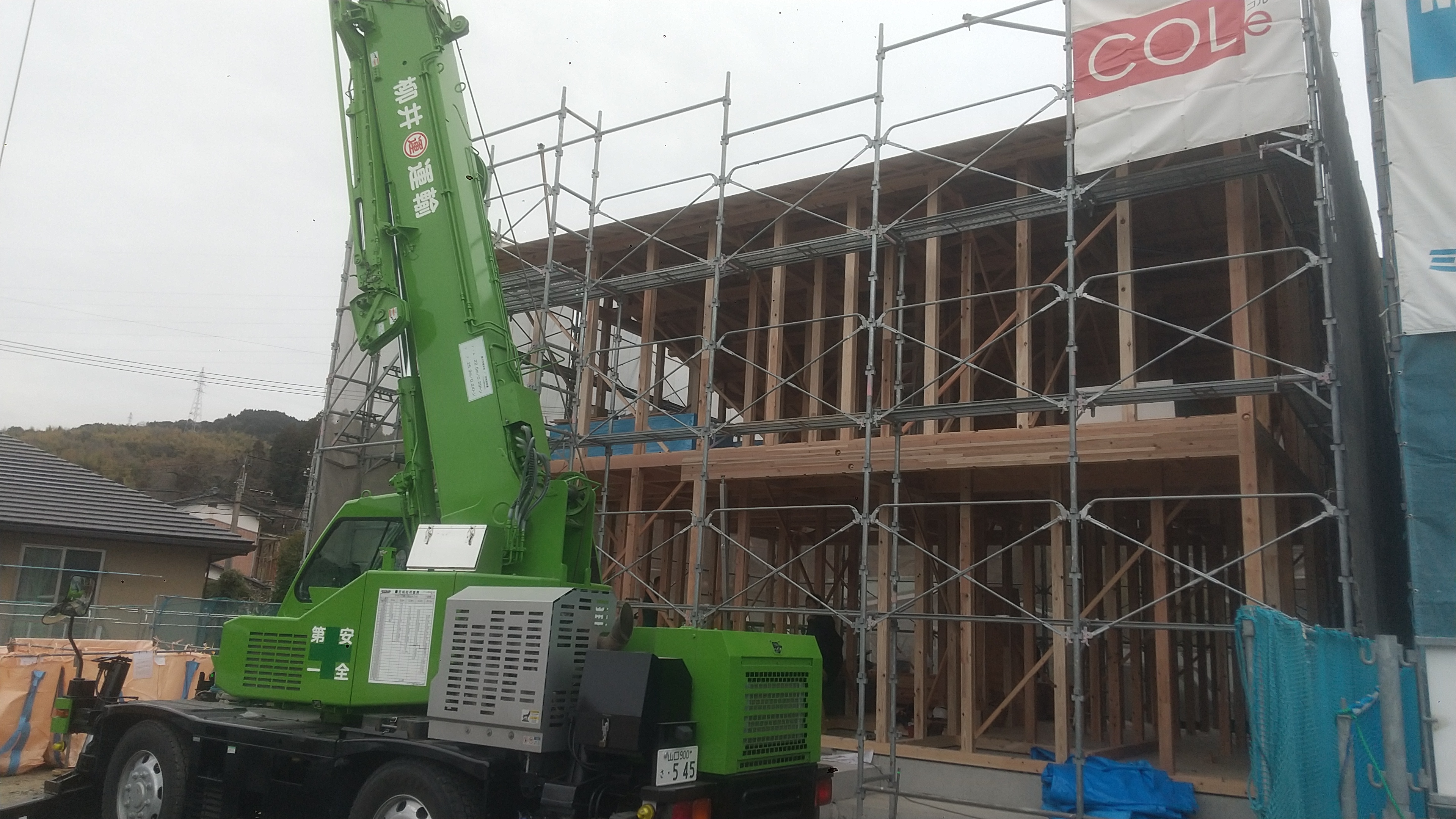 今日は光市のY様邸の建方、上棟がありました。 午後から雨の予報で心配でしたが 夕方5時前から降り出したので 作業には支障なく出来ました。