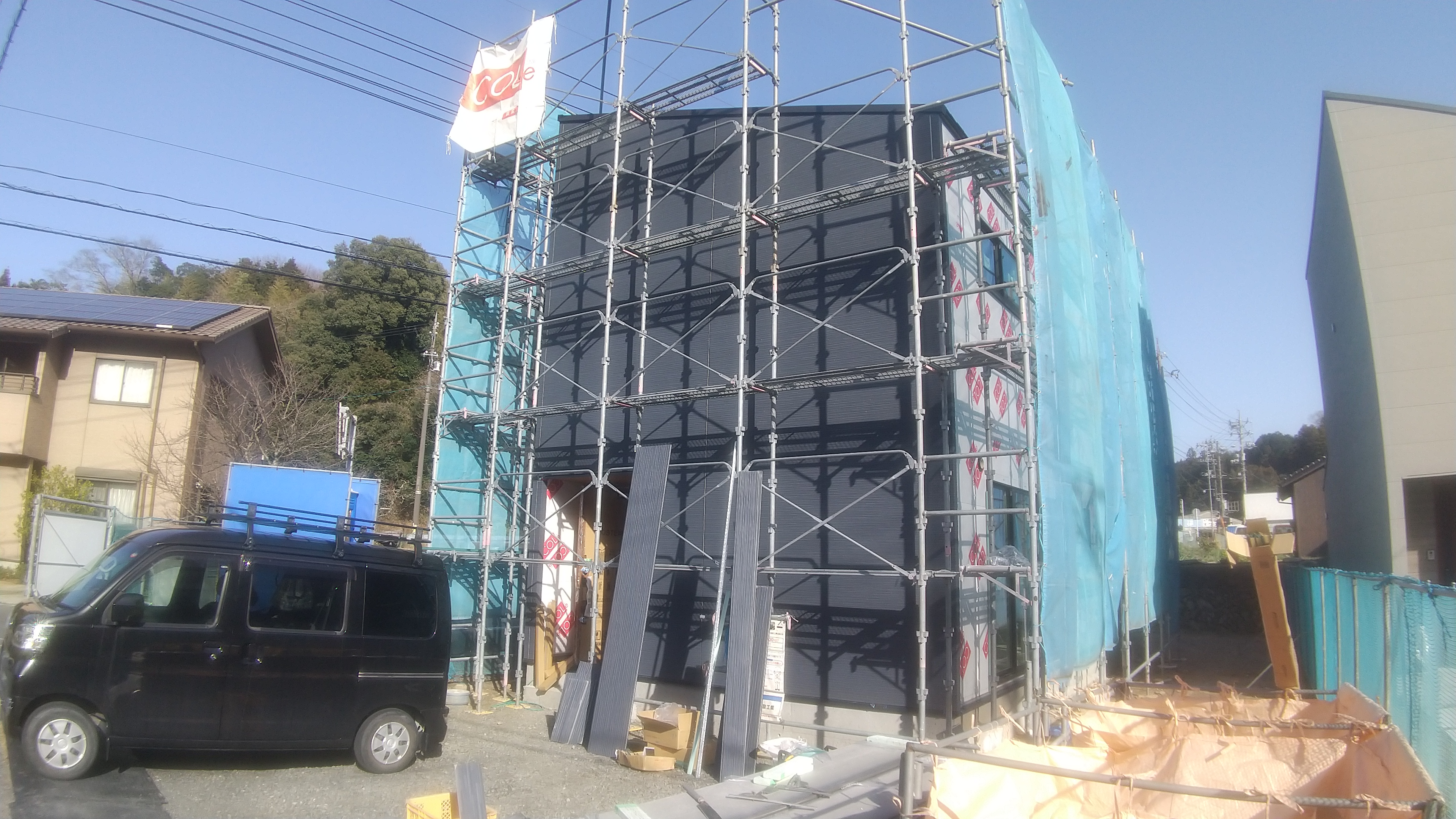 暖かい日が続いて あちこちで花が咲いています。 春までもうすぐですね。 下松市のU様邸は外壁工事真っ最中です。 もう、2日でサイディングは完了しそうです。