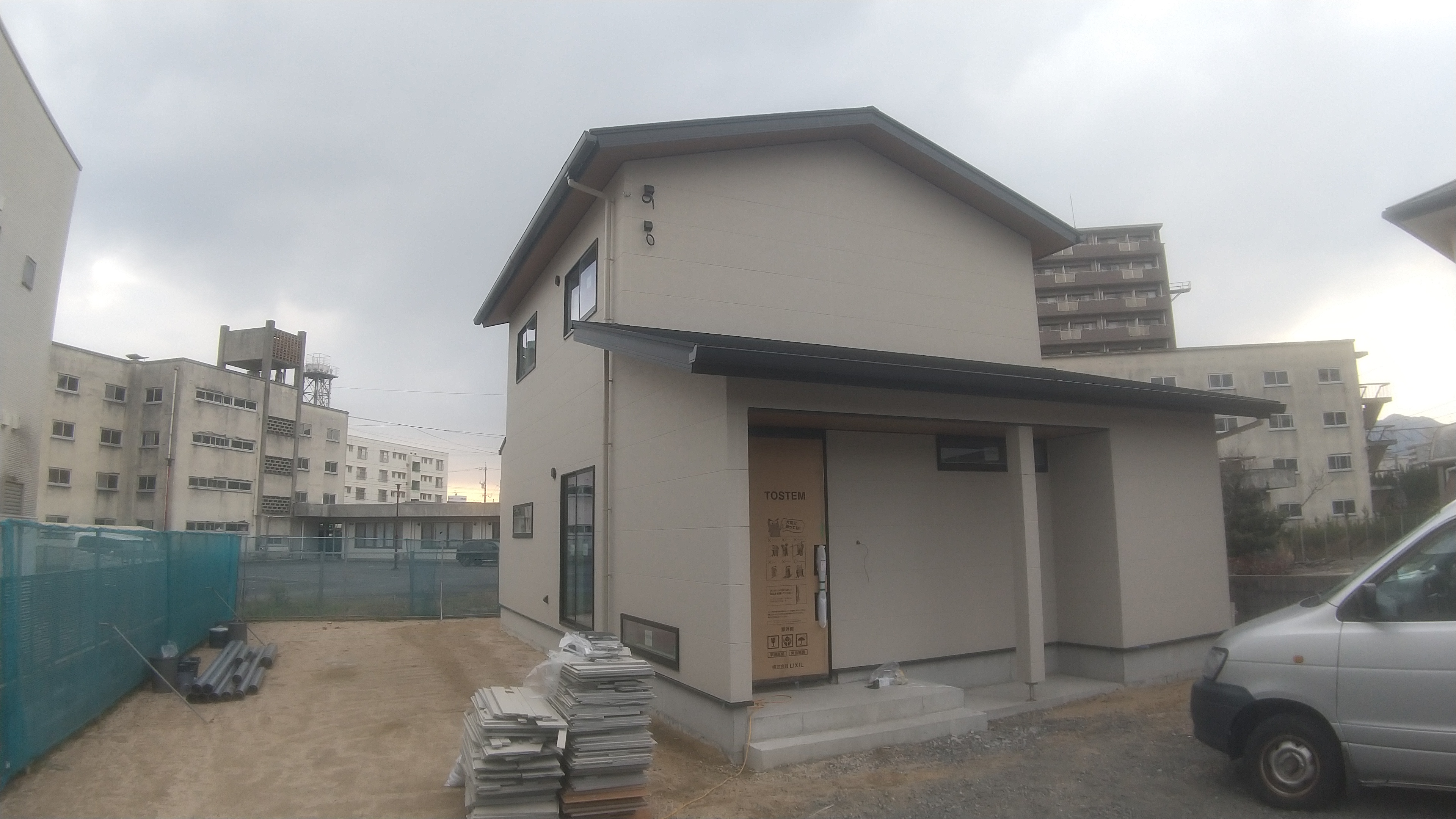 周南市のN様邸は外部の工事が終わったので 足場が解体されて N様邸の姿が露わになりました。 着実に完成の近づいています。