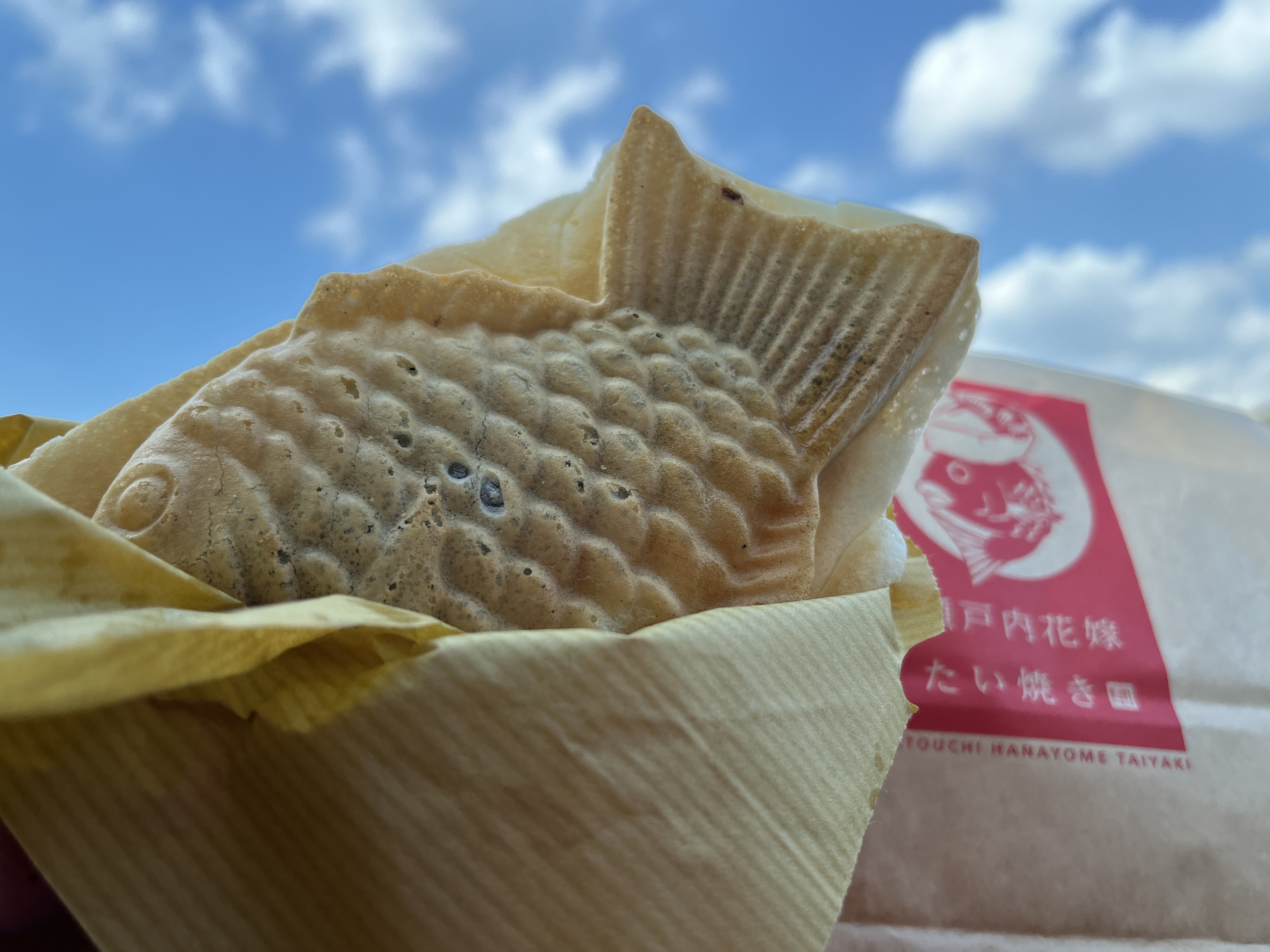 桜の木の数もたくさんあって 花もほぼ満開の状態だったので とってもキレイだったのですが ココ は ココ で 残念ながら 近くに『 居る場所 』がなくて ちょっとご迷惑だったかもですが 道端に停めた車の中から しばらく お花見をさせていただきました 『 花 』に充分満足した後は 恒例の『 団子 』タイム です 今回の『 団子 』は たい焼き 焼きたてホカホカのたい焼きで 今回も『 花より団子 』を きっちり 体現した 午後でした